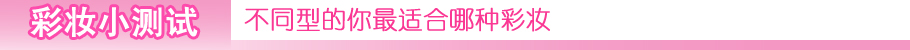 A、你是个对自己非常有自信的人 B、你是个会追逐流行抓住主流的人 D、你是个简单非常邻家女孩的人 使用睫毛膏、眼线装扮出烟薰妆,并且配合以弯度适宜的眉峰,可以令你的眼睛更具有诱惑力,眉目传情形容的就是这样的你哦!男士们往往会倾倒在你高傲性感的神态之下,非常主动地对你展开攻势哦![说说你的意见] 点缀眼线,唇,加上明彩笔的使用,让自己宛若古典美女般清新素雅,整张脸的白以及细致的五官是会让人倒抽一口气的呦!站在你旁边的男士,会感觉到你身上的清香,把你当成仙子一样捧着,为你所倾倒。[说说你的意见]