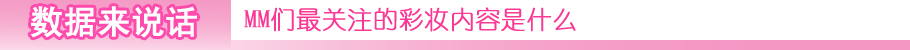 根据调查,有42%的MM最感兴趣的彩妆部位是眼妆,其次底妆部分也占到了28%,排在第三位的是唇妆,占到18%。而这三项则占据整个调查的90%以上。